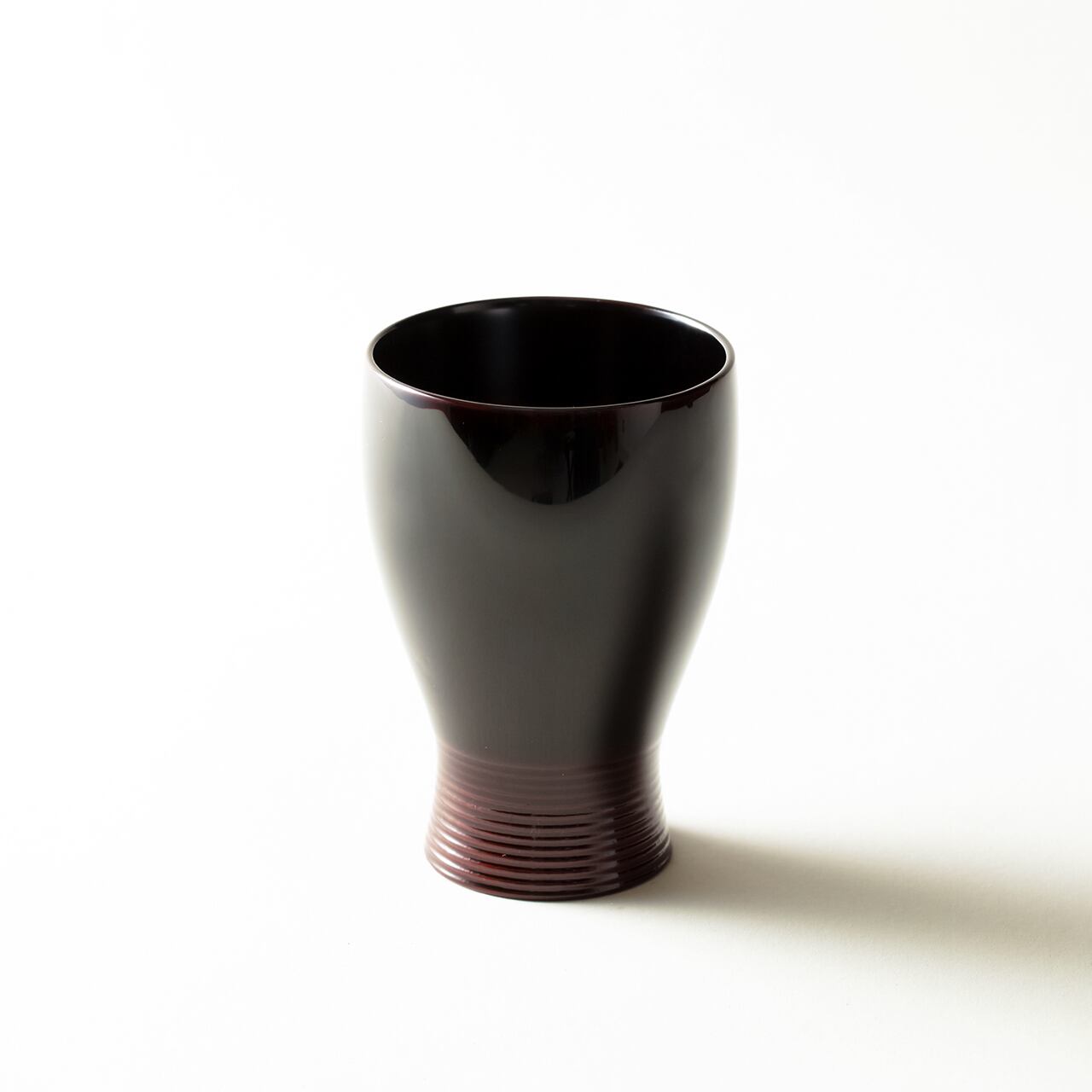 高台を高くした形状の木地に、塗は趣のある溜漆を塗った凛とした酒器
